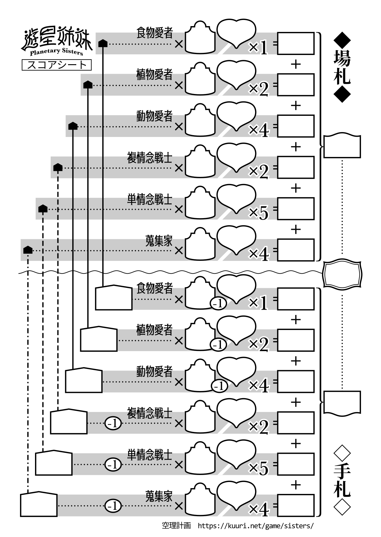 各カテゴリの得点を合算して家札の得点を算出し、用紙の右端下方の枠に記入します。