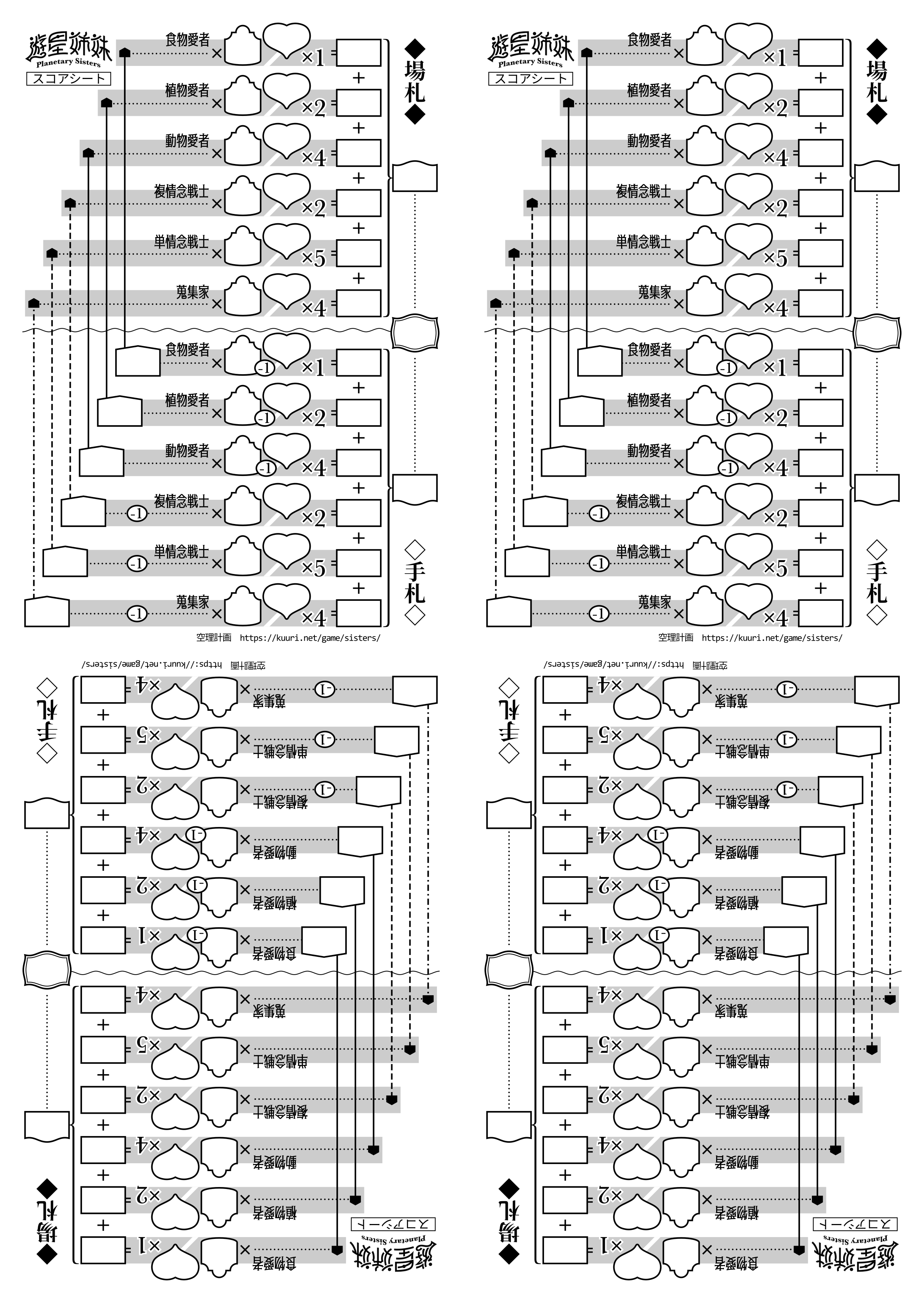 - 場札の得点についても、用紙の上半分を使って同様に計算を行い、用紙に記入します。