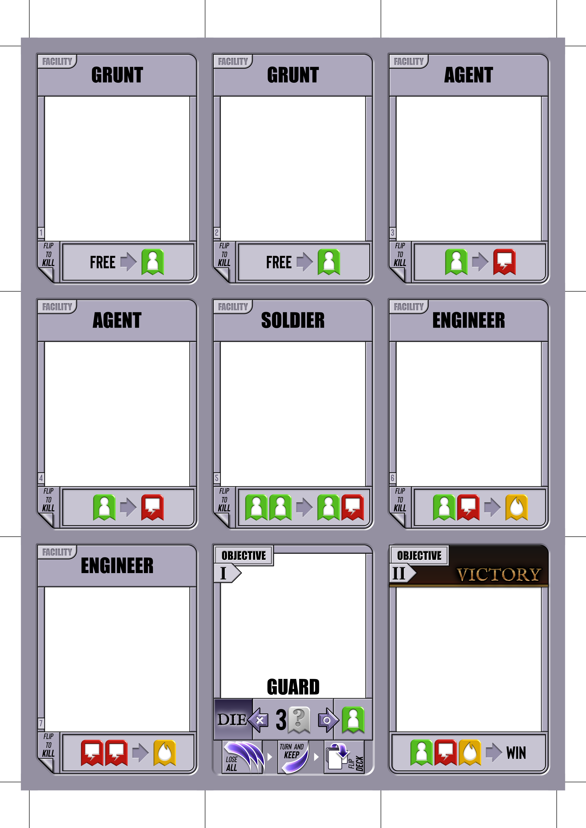 | この面が表になったらゲームに勝利する。 | 条件: 1人員+1情報+1設備 |