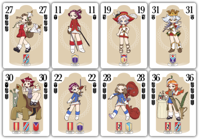 ゲームの終了時に8枚のカードで8人姉妹ができます。
