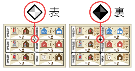 • 《2人用》満足度の収穫者数は、場札と自分の番人札だけで算出します